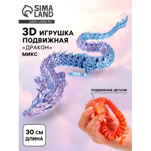3Д - печатная игрушка «Дракон», подвижная, цвет МИКС