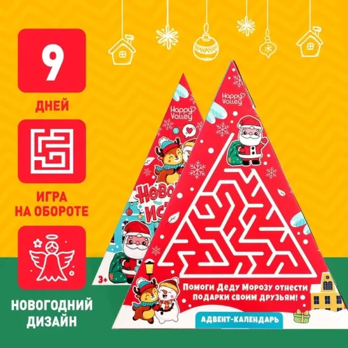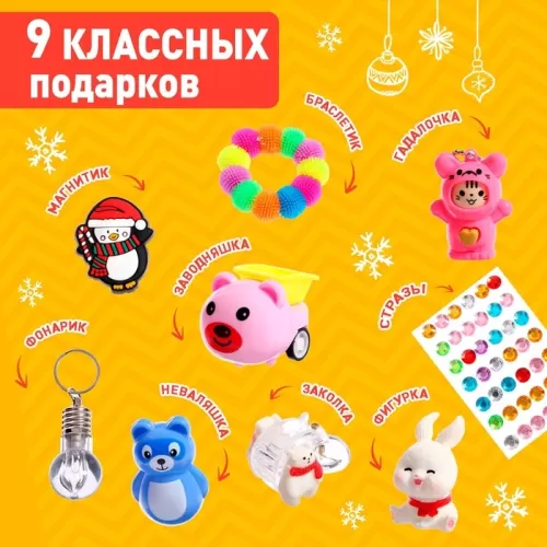 Адвент - календарь детский «Новогодняя история», 9 окошек с подарками