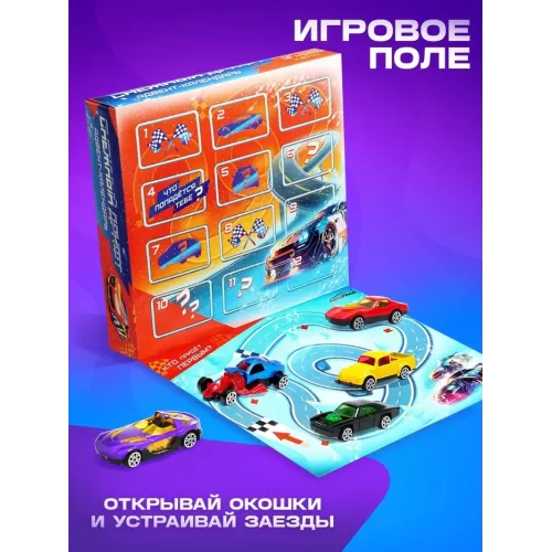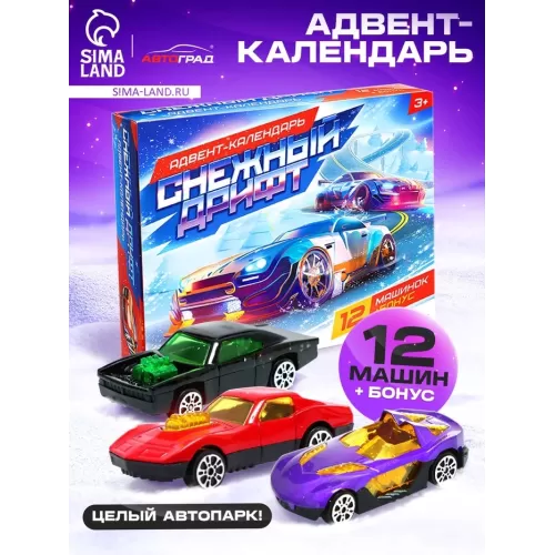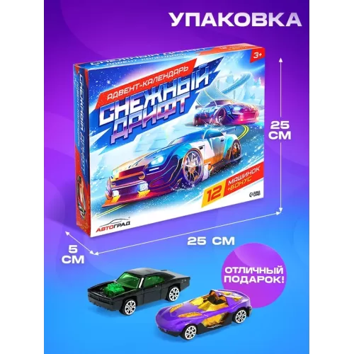 Адвент - календарь детский «Снежный дрифт», с машинками, набор, 12 окошек с подарками, новогодний