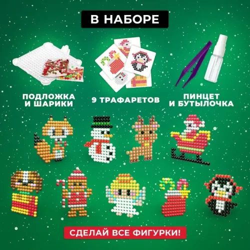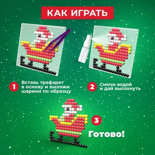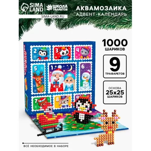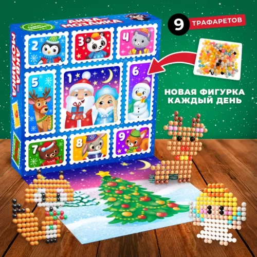 Адвент - календарь новогодний «Аквамозаика», детский, 9 окошек с подарками, 9 карточек, 1000 шариков