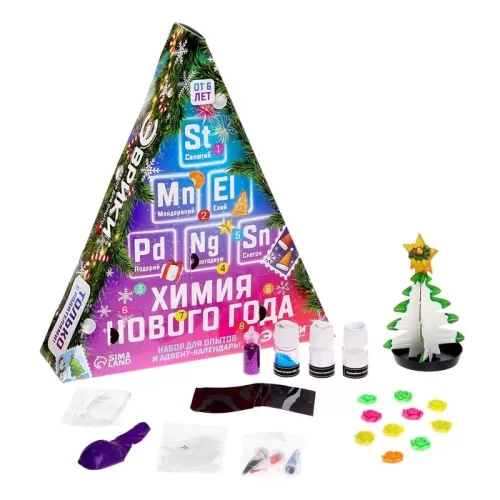 Адвент - календарь новогодний «Химия Нового года», детский, 9 окошек с подарками: 9 опытов