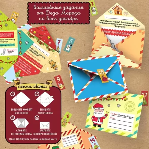Адвент - календарь «Письма от Деда Мороза», 20 писем, новогодний набор для творчества
