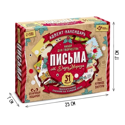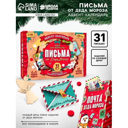Адвент - календарь «Письма от деда мороза», 31 письмо, новогодний набор для творчества