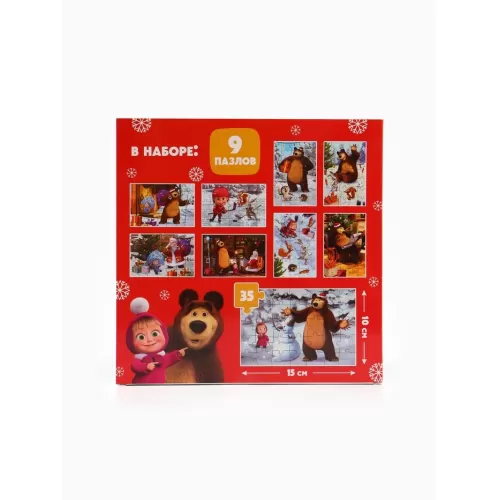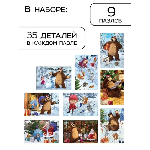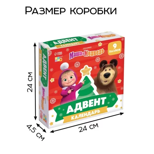Адвент-календарь «Новый год», 9 пазлов, Маша и Медведь