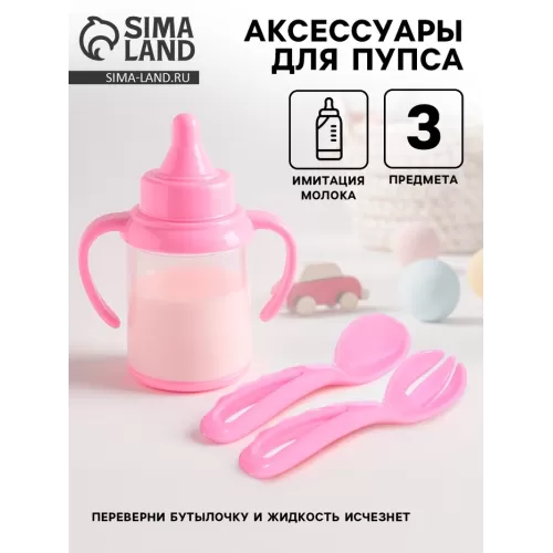 Аксессуары для пупса, набор 3 шт.: бутылочка, ложка, вилка