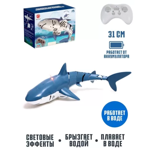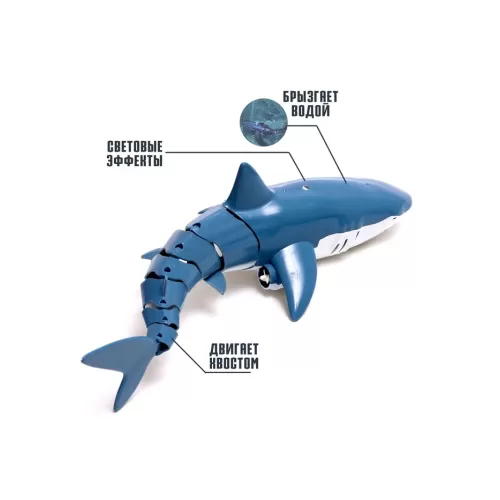 Акула радиоуправляемая «Белая», плавает, брызгает водой, работает от аккумулятора, цвет синий