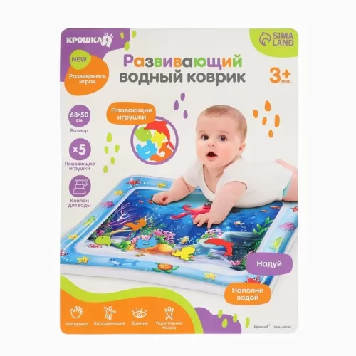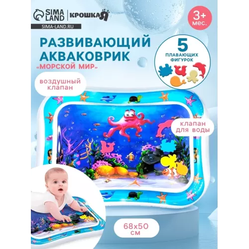 Акваковрик надувной развивающий водный коврик «Морской мир», 68×50 см, Крошка Я