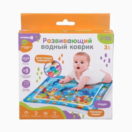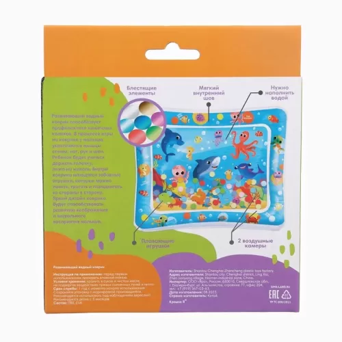 Акваковрик надувной развивающий водный «Морские жители», 65×50 см + игрушка В ПОДАРОК