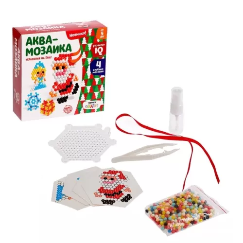 Аквамозаика «Дед Мороз и Снегурочка», украшение на ёлку, 4 фигурки