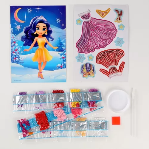 Алмазная мозаика с частичным заполнением для детей. Наряди персонажа на новый год «Снежная красавица»