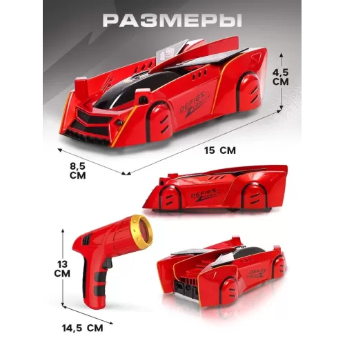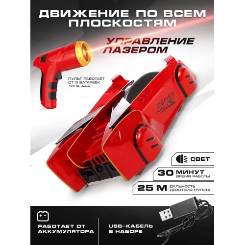 Антигравитационная машинка LASER, управление лазером, работает от аккумулятора, ездит по стенам, цвет красный