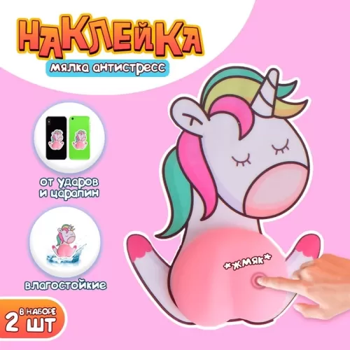Антистресс - наклейка «Попка. Единорог», в наборе 2 мялки