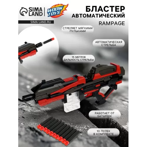 Автоматический бластер RAMPAGE, стреляет мягкими пулями, работает от батареек