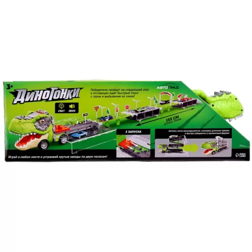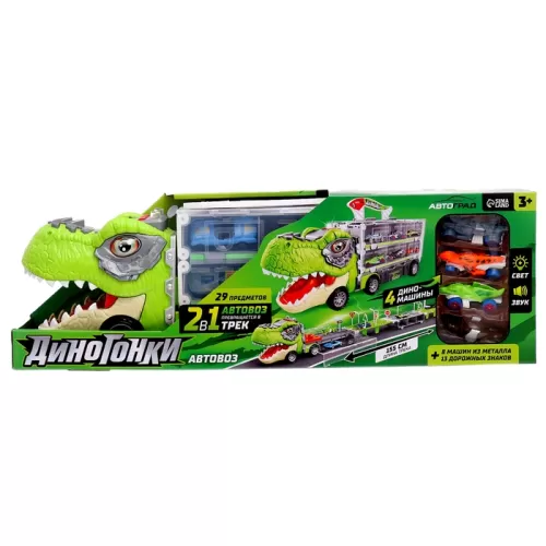 Автовоз-трек «Диногонки», 12 металлических машин, световые и звуковые эффекты