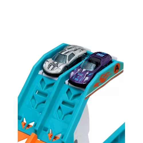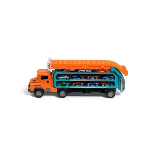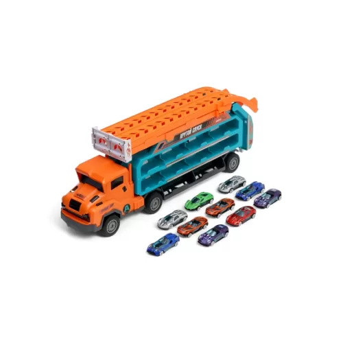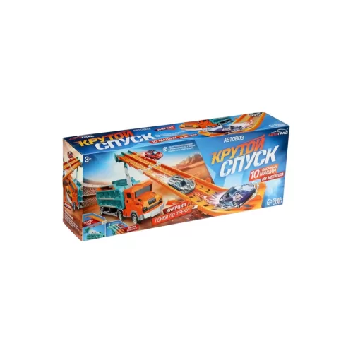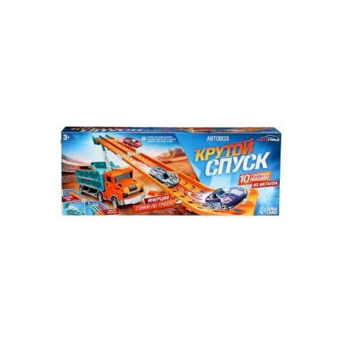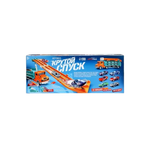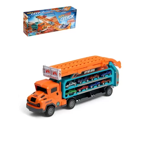 Автовоз-трек «Крутой спуск», 10 металлических машин, инерция, с катапультой