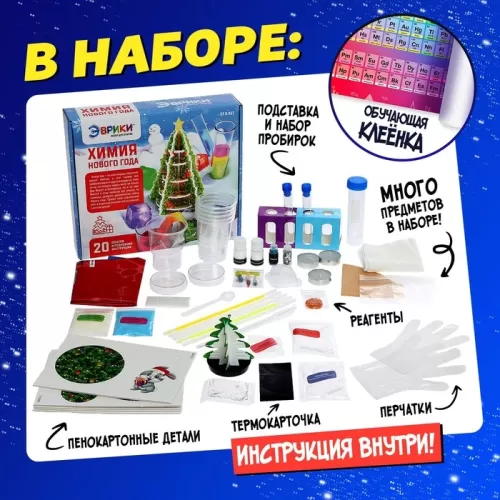 Большой набор для опытов «Новогодняя химия», 20 опытов