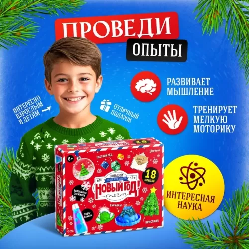Большой набор опытов «Новый год!», 18 опытов, 34 предмета