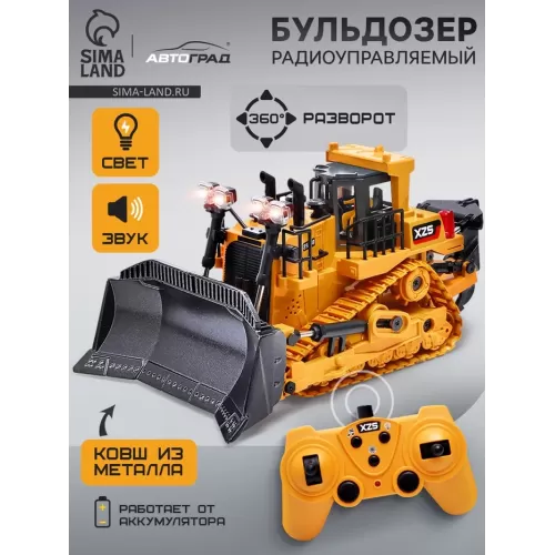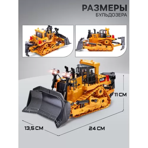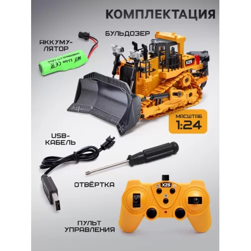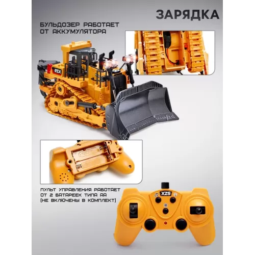 Бульдозер радиоуправляемый XZS, 1:24, с элементами из металла, работает от аккумулятора