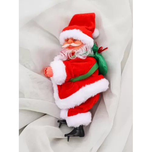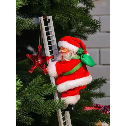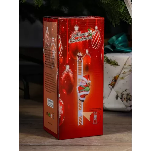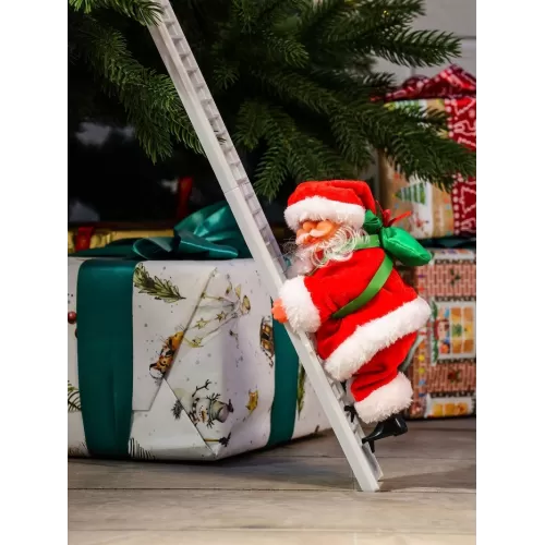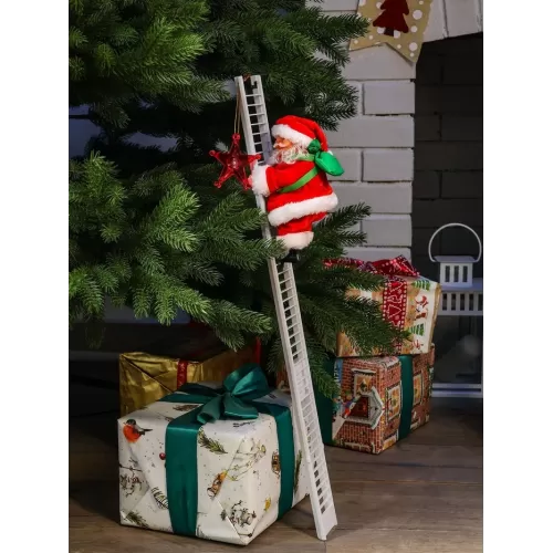 Дед Мороз «С мешком, на лестнице» 20×9 см, 65 см, движение, музыка, красный