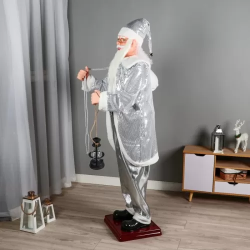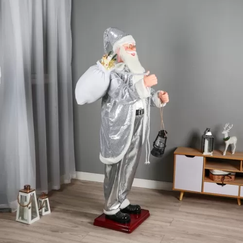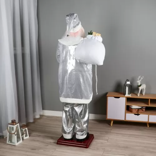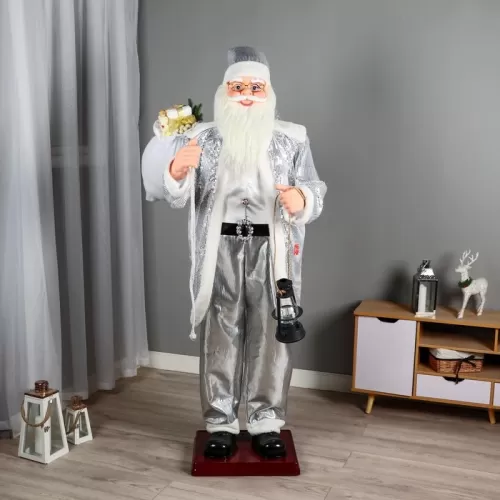 Дед Мороз «С мешком» реакция на движение, танцует, 180 см, серебро