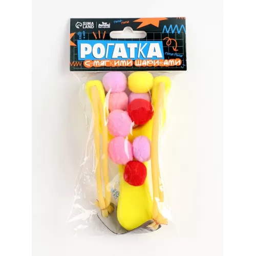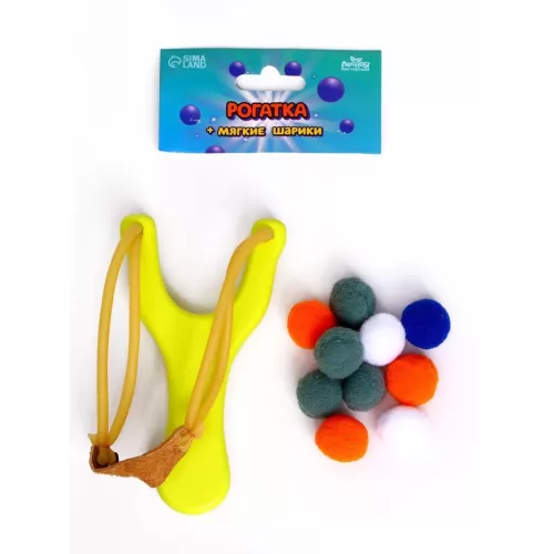 Деревянная игрушка «Рогатка и мягкие шарики», жёлтая