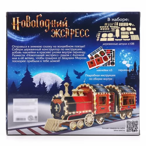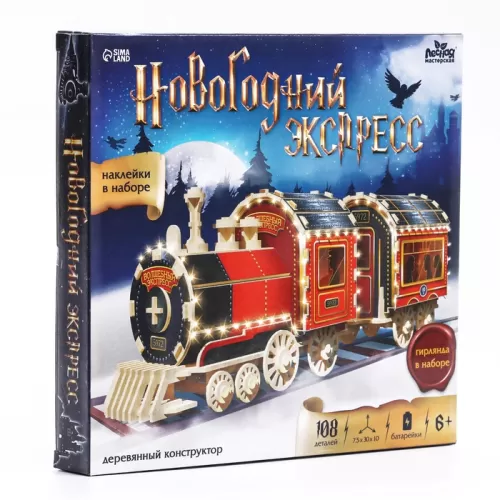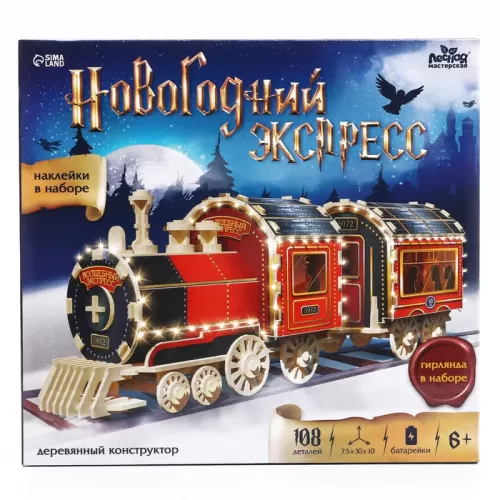 Деревянный конструктор «Новогодний экспресс ГП», 7.5×30×10 см, 108 деталей, с батарейками, 6+