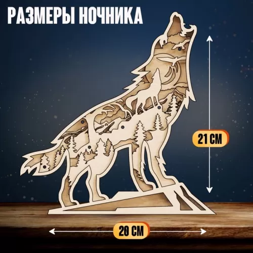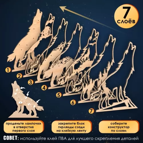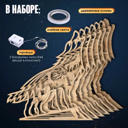 Деревянный конструктор «Волк», размер 21×20 см, гирлянда в комплекте