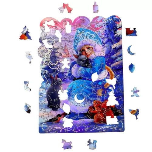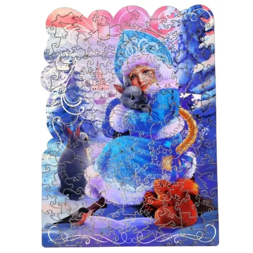 Деревянный пазл фигурный «Новый год! Зимняя краса», голографические детали