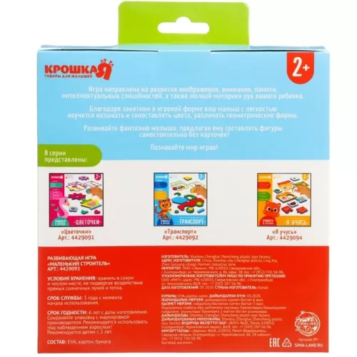 Детская развивающая игра «Маленький строитель / Транспорт», EVA + карточки, виды МИКС, Крошка Я
