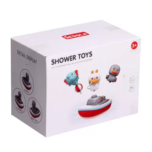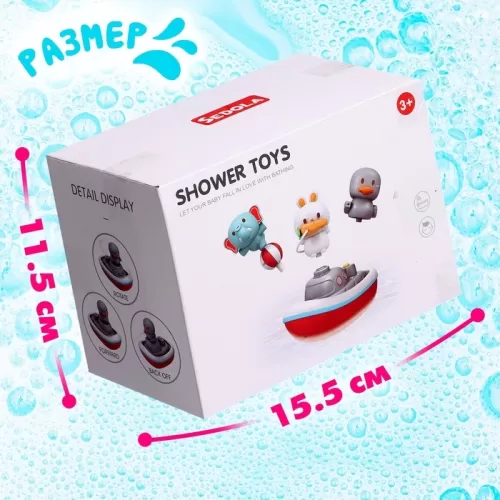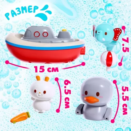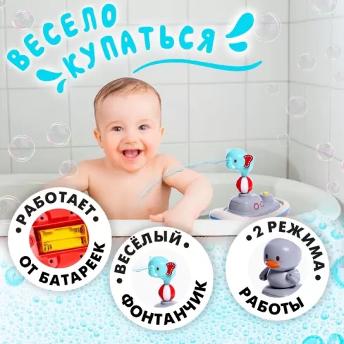 Детский фонтанчик для ванны «Зверята на кораблике», 3 насадки, работает от батареек