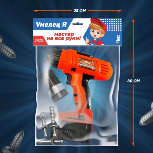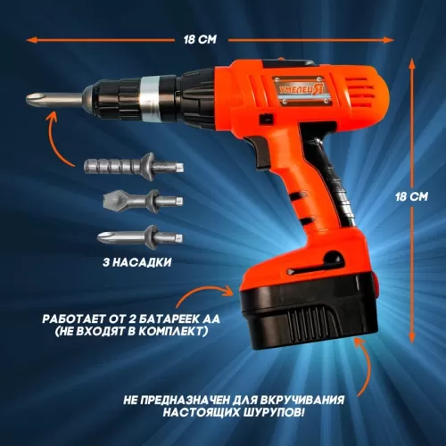 Детский инструмент «Шуруповёрт», 3 насадки, на батарейках