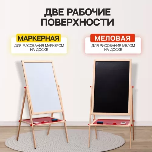 Детский мольберт двухсторонний, высота регулируется, 114×47×40 см