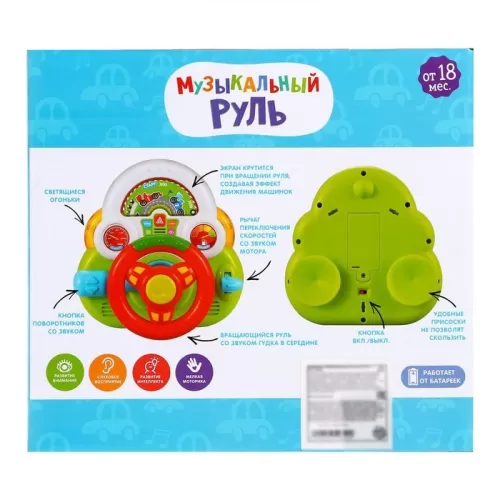 Детский музыкальный руль «Машинки», световые и звуковые эффекты, работает от батареек