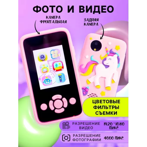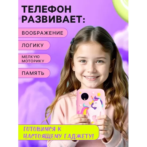 Детский обучающий телефон «Единорожек», звуковые и световые эффекты, камера, цвет розовый