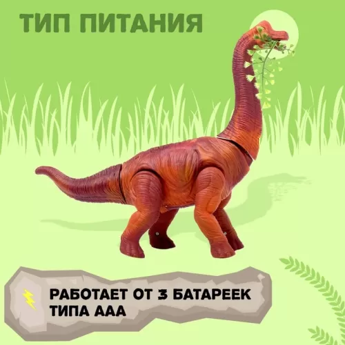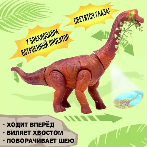 Динозавр «Брахиозавр травоядный», работает от батареек, откладывает яйца, с проектором, цвет коричневый
