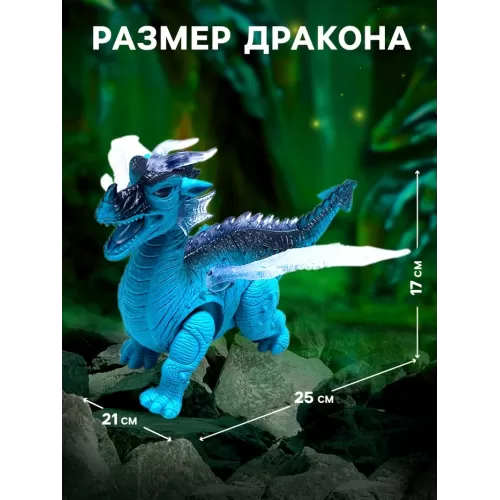 Динозавр «Дракон», работает от батареек, световые и звуковые эффекты, цвет голубой
