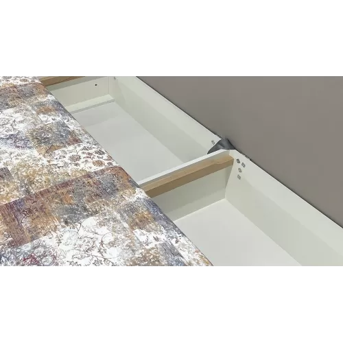 Для размещения постельного белья предусмотрен просторный отсек в виде ламинированного короба. Его легко мыть и чистить.