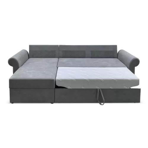 Классический угловой диван решает проблемы ограниченного пространства. Днем – это уютное место для приёма гостей или приятного отдыха в кругу семьи. Ночью – полноценная двуспальная кровать. Долговечная и практичная система трансформации «дельфин» предназначена для ежедневного использования.