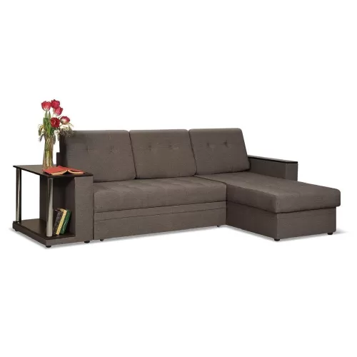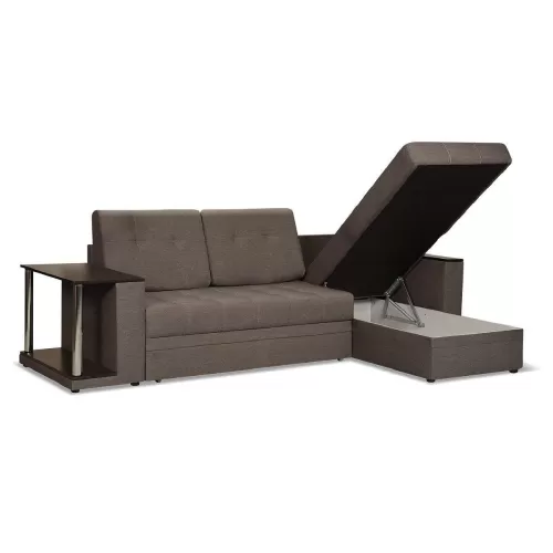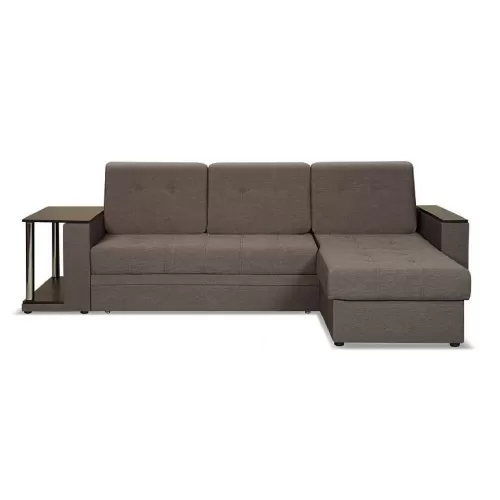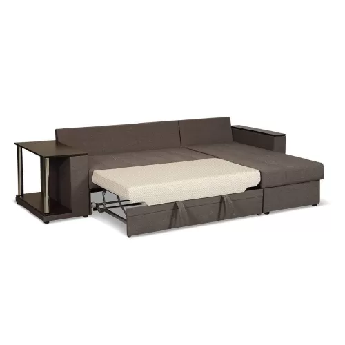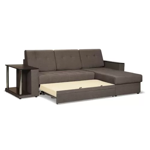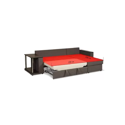 Диван легко раскладывается с помощью механизма трансформации “дельфин”. Получается абсолютно ровная поверхность без ямок и переходов по высоте - то есть полноценное спальное место, рассчитанное на двух человек. В основе наполнителя независимый пружинный блок и высококачественный ППУ. Украшают “Атланту” хромированные ножки встроенного столика.
