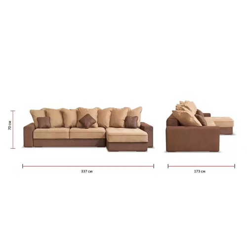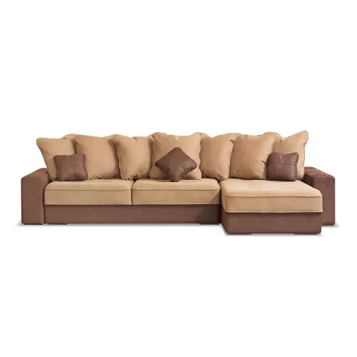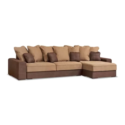 Диван угловой Экзотик 7 Европа с оттоманкой бежево-коричневый