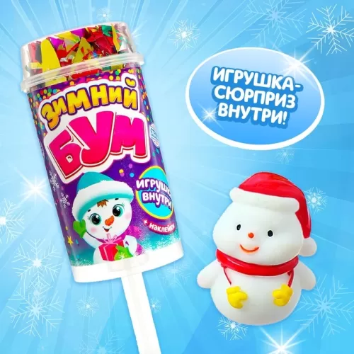Хлопушка на палочке «Зимний бум», снеговик 1, с наклейками