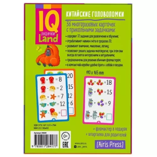 IQ Многоразовые карточки с маркером «Китайские головоломки. Счёт в пределах», 6+