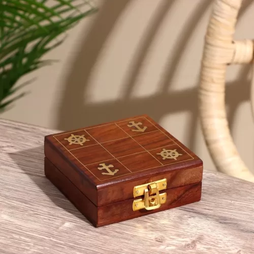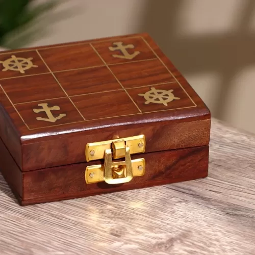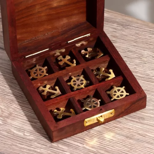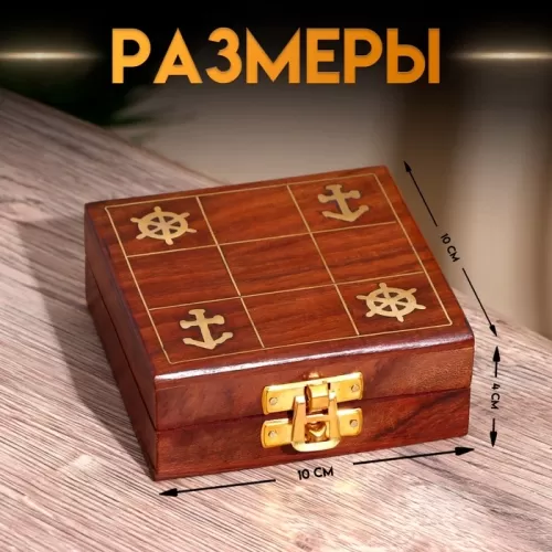 Игра крестики-нолики «Море», 10×10×4 см, дерево, латунь