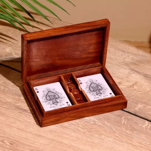 Игра настольная 2 в 1, кубики, 2 колоды карт, 18×12×4 см, дерево шишам