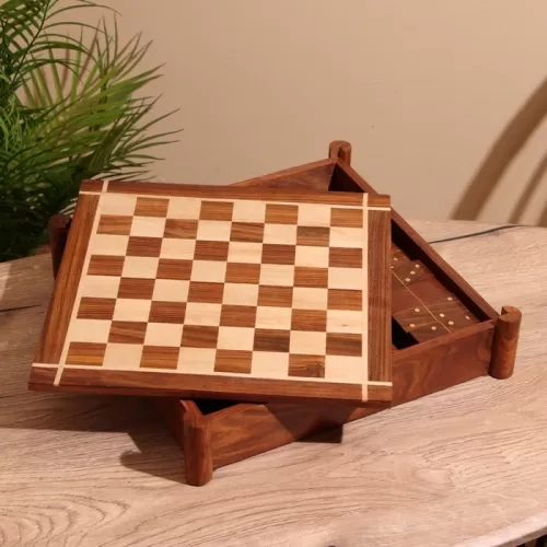 Игра настольная 3 в 1, шахматы, домино, кубики, доска 35×35 см, дерево шишам