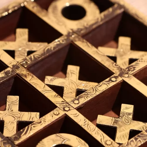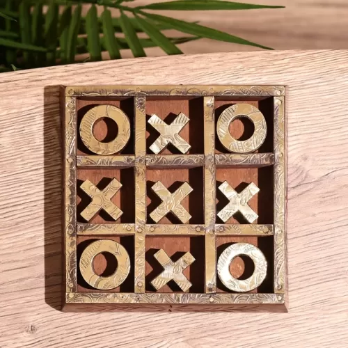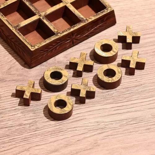 Игра настольная «Крестики-нолики», 13×13 см, дерево шишам, латунь