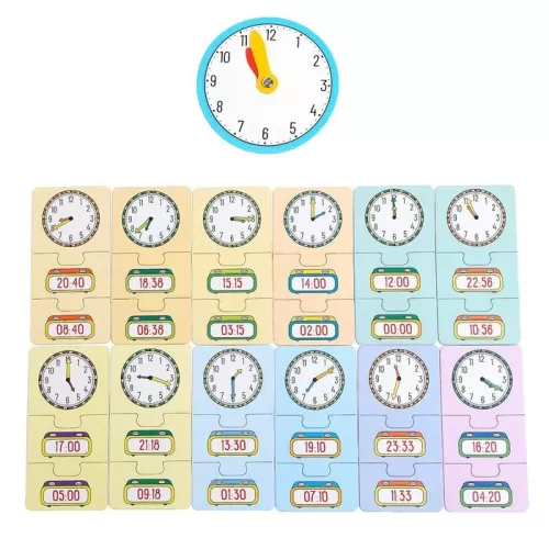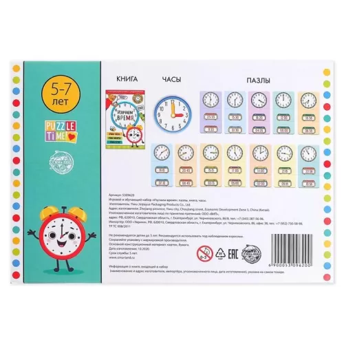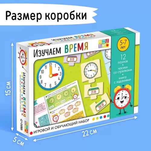 Игровой и обучающий набор «Изучаем время», пазлы, книга, часы, наклейки