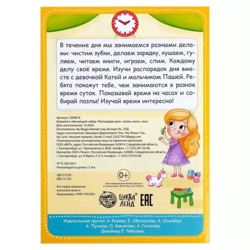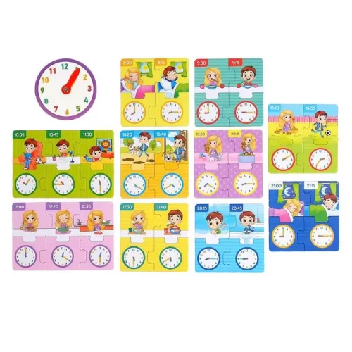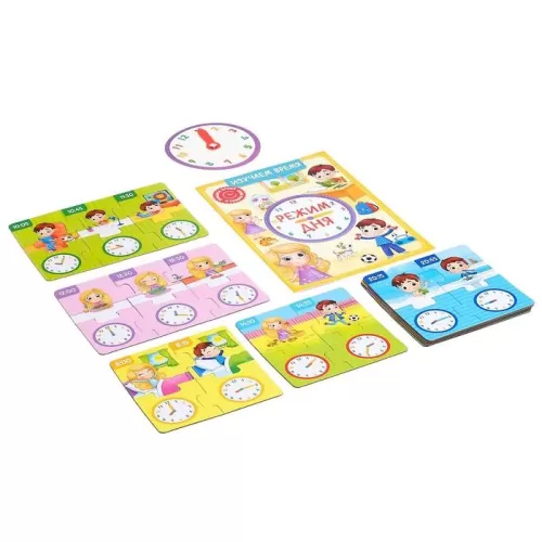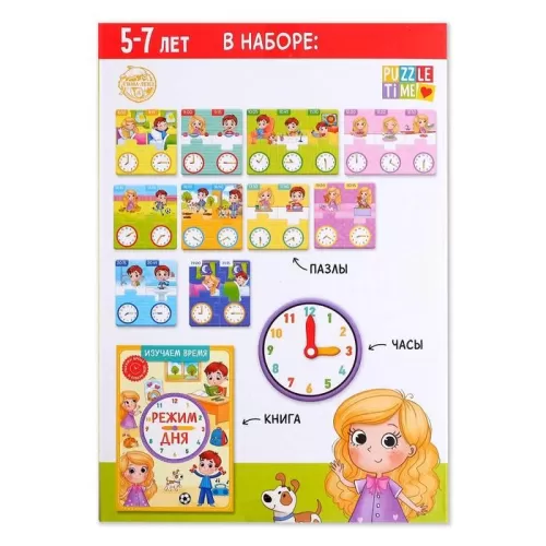 Игровой и обучающий набор «Распорядок дня», пазлы, книга, часы