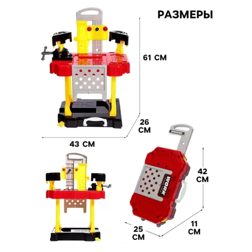 Игровой модуль детский «Мастерская» 3 в 1, верстак с инструментами, 56 элементов