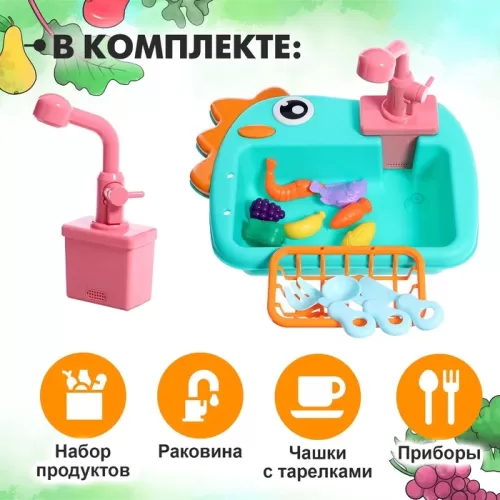 Игровой модуль кухни «Раковина-Динозаврик», с набором продуктов МИКС, вода циркулирует